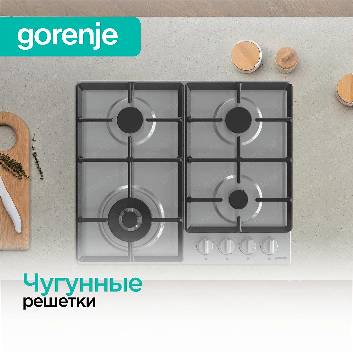 Независимая газовая варочная панель Gorenje GW641EX — это идеальный баланс между современным дизайном, продуманной эргономикой и высоким качеством исполнения. Серебристый цвет фурнитуры и чугунные держатели для посуды подчёркивают строгий и элегантный дизайн устройства. Благодаря универсальному оформлению и компактным размерам, панель органично дополнит интерьер любой кухни — от классической до минималистичной в стиле хай-тек.
