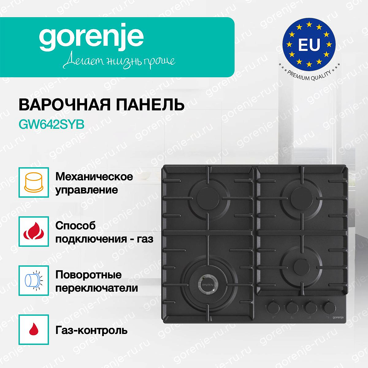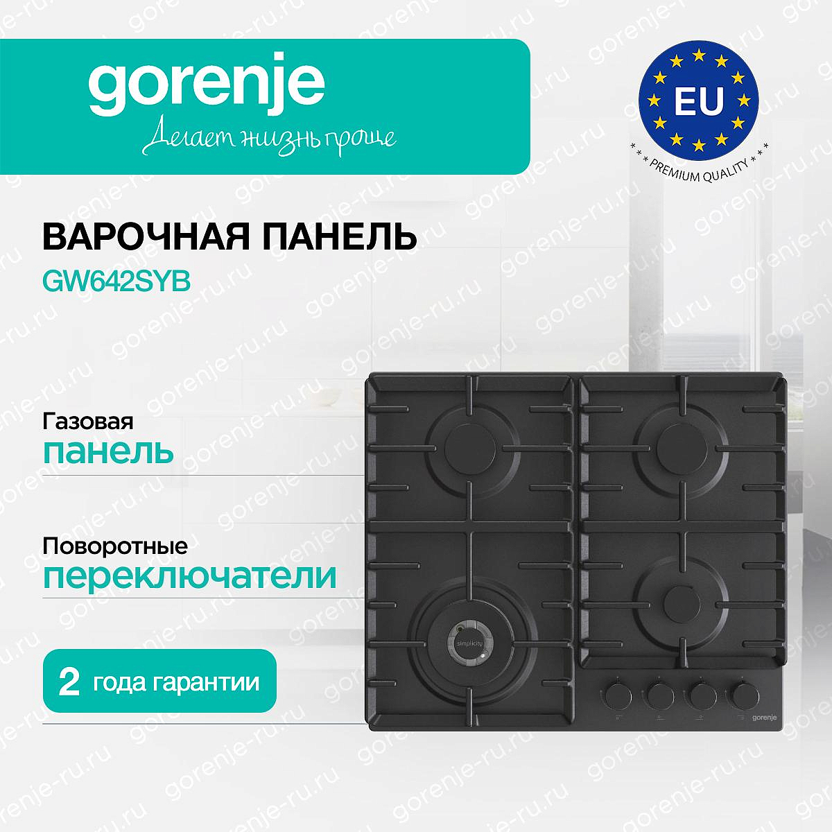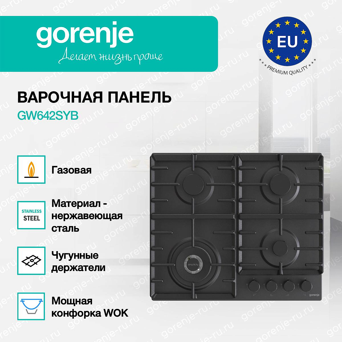** Все информационные материалы, представленные на Сайте, носят справочный характер и не могут в полной мере передавать достоверную информацию о свойствах, комплектации и характеристиках товара, включая цвета, размеры и формы. Фирма-производитель оставляет за собой право на внесение изменений в конструкцию, дизайн и комплектацию товара без предварительного уведомления. Перед оформлением Заказа Покупатель должен обратиться к Продавцу для уточнения свойств и характеристик Товара. Подробная информация о товаре указывается в инструкции и на упаковке товара. Используемое название в России: Горенье GW642SYB
