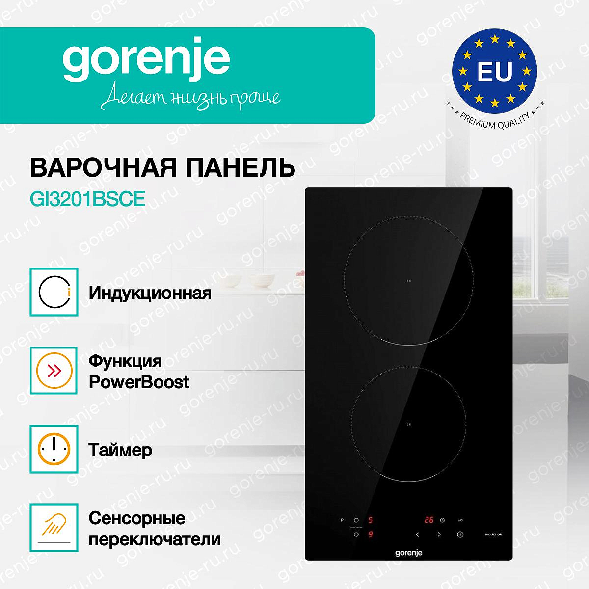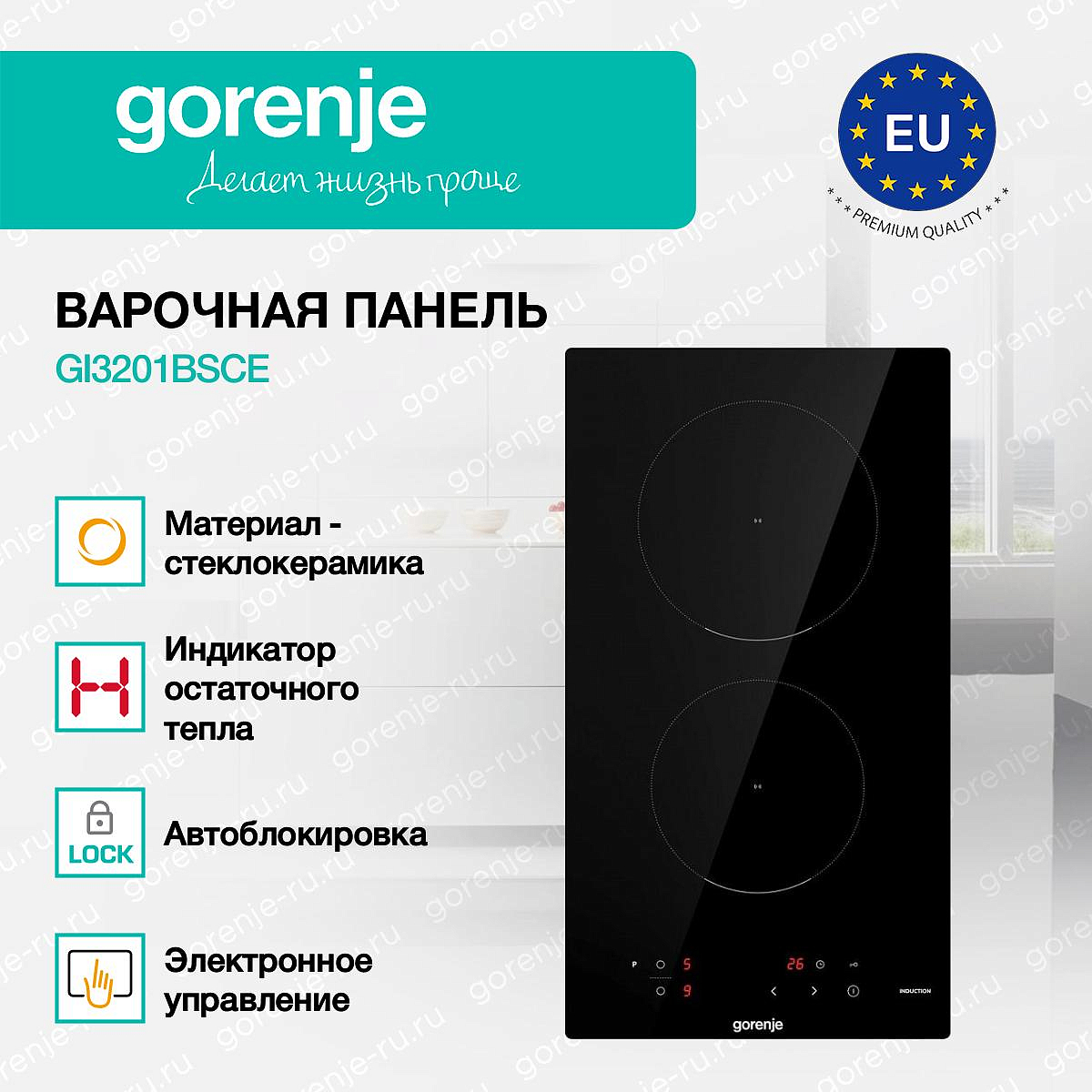 ** Все информационные материалы, представленные на Сайте, носят справочный характер и не могут в полной мере передавать достоверную информацию о свойствах, комплектации и характеристиках товара, включая цвета, размеры и формы. Фирма-производитель оставляет за собой право на внесение изменений в конструкцию, дизайн и комплектацию товара без предварительного уведомления. Перед оформлением Заказа Покупатель должен обратиться к Продавцу для уточнения свойств и характеристик Товара. Подробная информация о товаре указывается в инструкции и на упаковке товара. Используемое название в России: Горенье GI3201BSCE