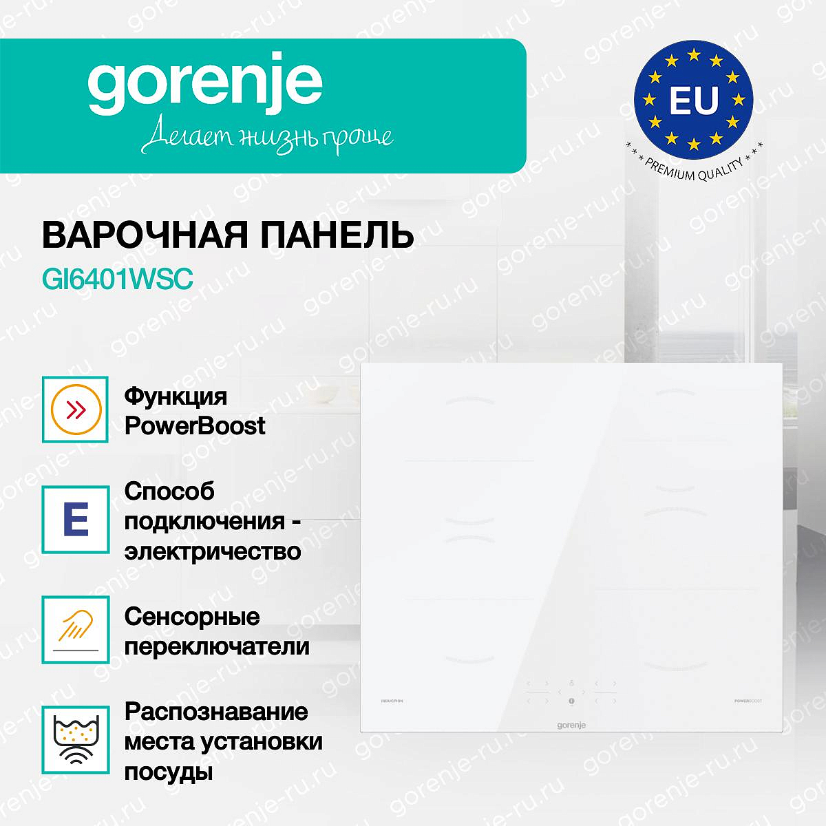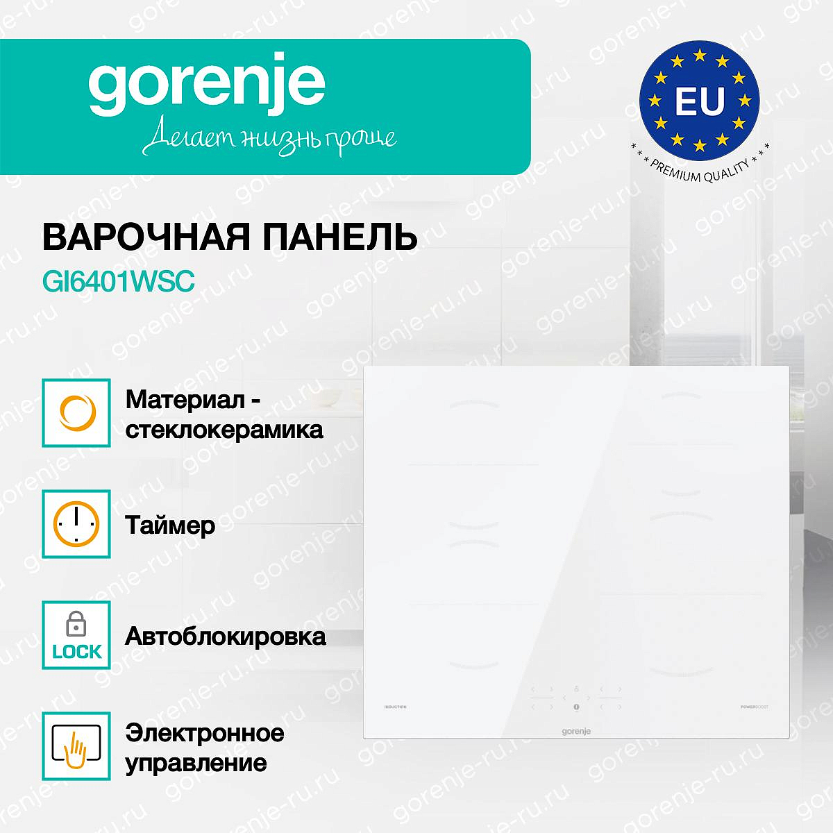 ** Все информационные материалы, представленные на Сайте, носят справочный характер и не могут в полной мере передавать достоверную информацию о свойствах, комплектации и характеристиках товара, включая цвета, размеры и формы. Фирма-производитель оставляет за собой право на внесение изменений в конструкцию, дизайн и комплектацию товара без предварительного уведомления. Перед оформлением Заказа Покупатель должен обратиться к Продавцу для уточнения свойств и характеристик Товара. Подробная информация о товаре указывается в инструкции и на упаковке товара. Используемое название в России: Горенье GI6401WSC