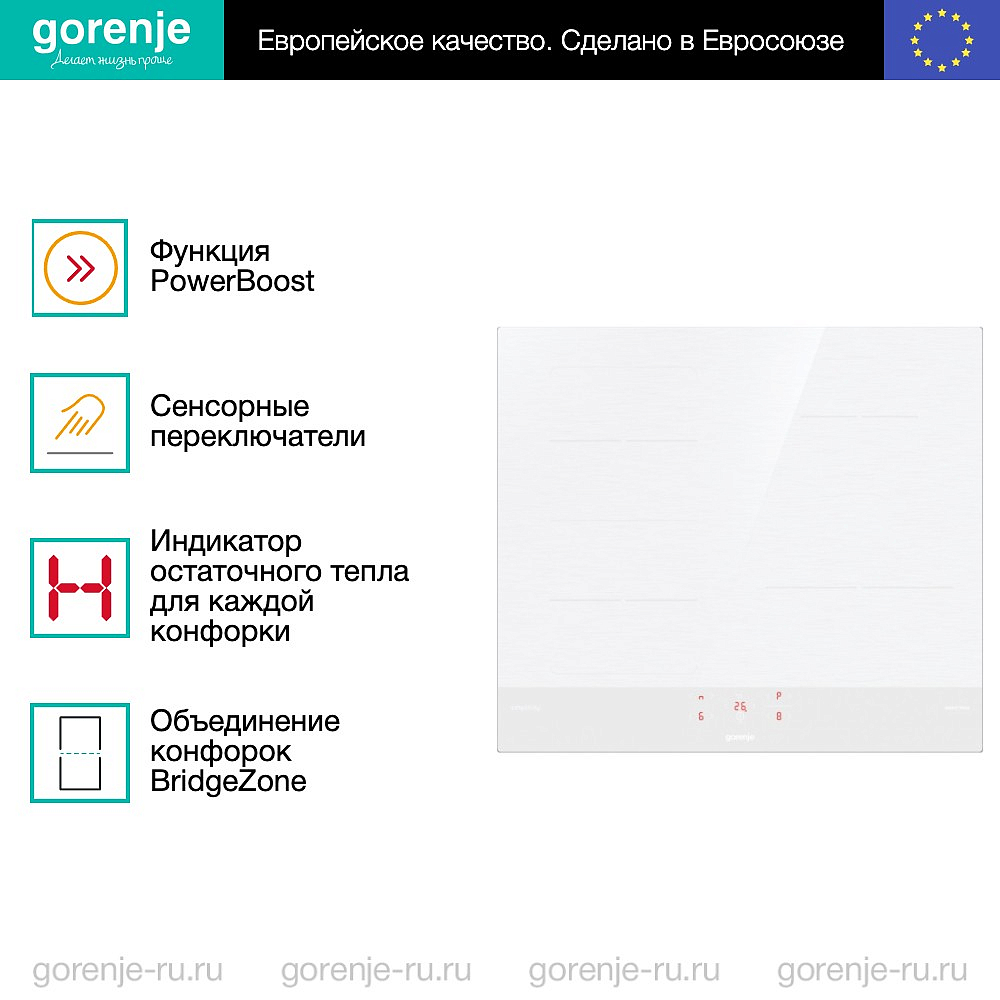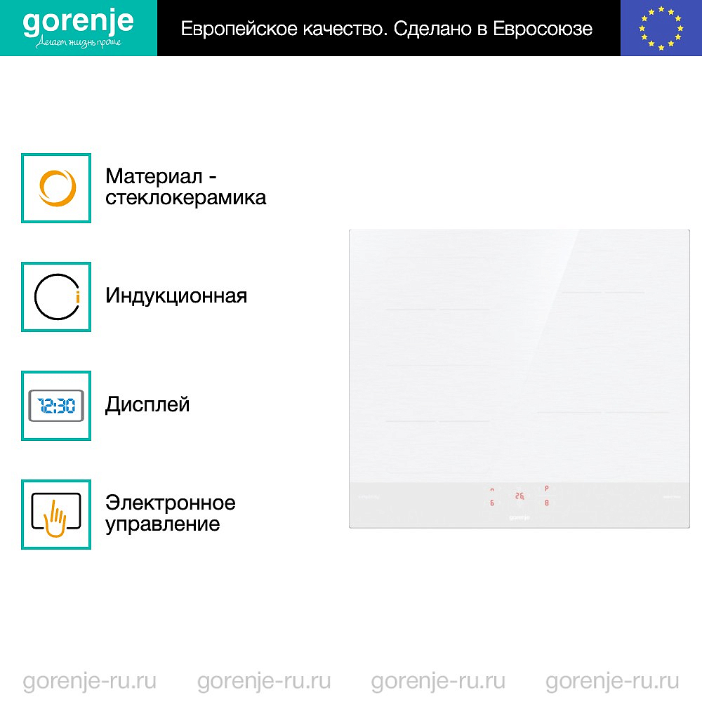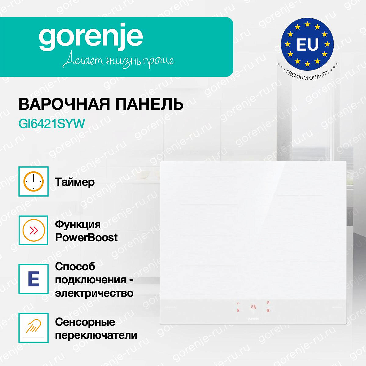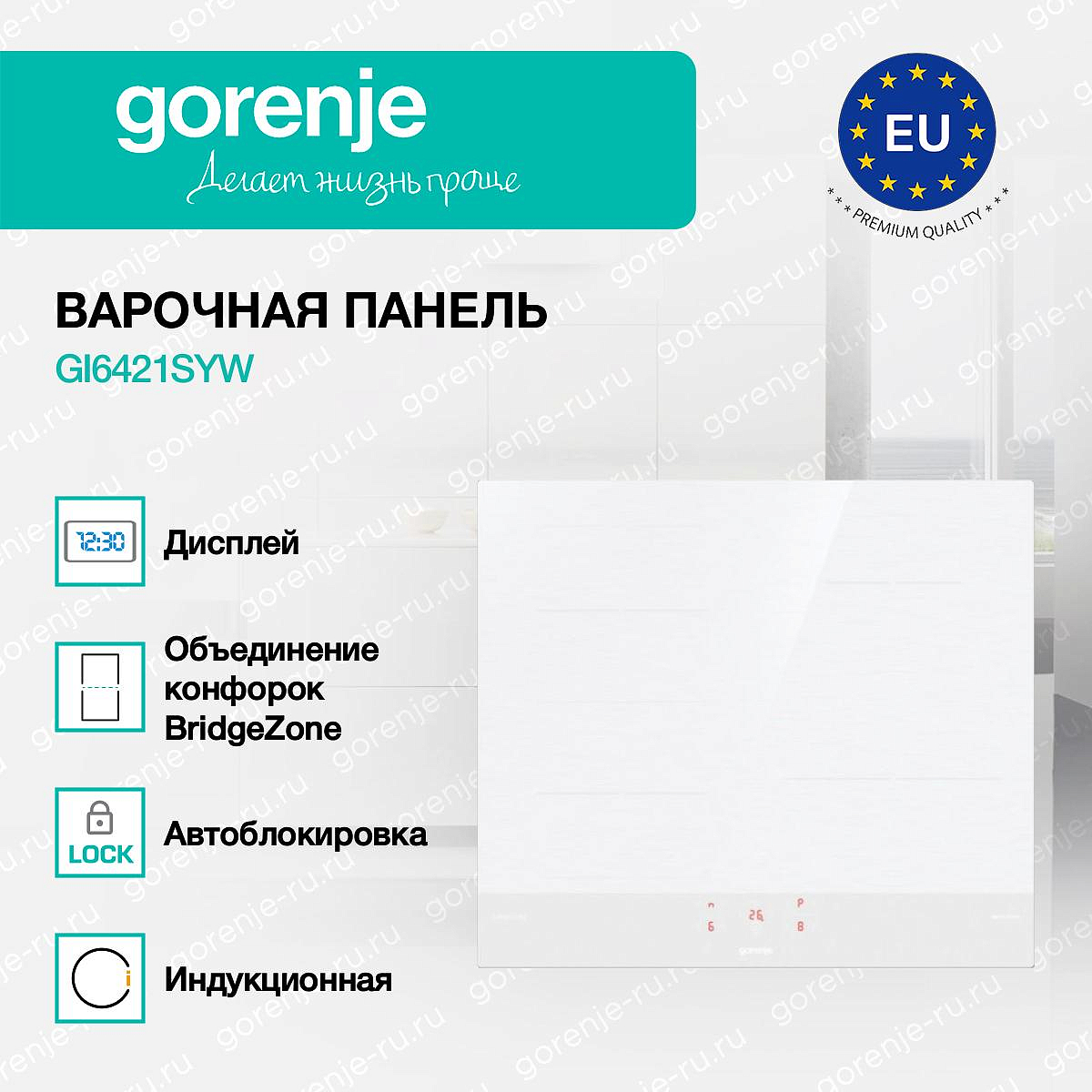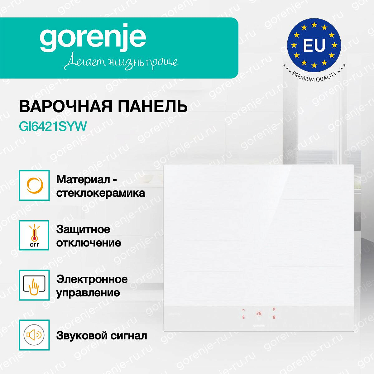 ** Все информационные материалы, представленные на Сайте, носят справочный характер и не могут в полной мере передавать достоверную информацию о свойствах, комплектации и характеристиках товара, включая цвета, размеры и формы. Фирма-производитель оставляет за собой право на внесение изменений в конструкцию, дизайн и комплектацию товара без предварительного уведомления. Перед оформлением Заказа Покупатель должен обратиться к Продавцу для уточнения свойств и характеристик Товара. Подробная информация о товаре указывается в инструкции и на упаковке товара. Используемое название в России: Горенье GI6421SYW