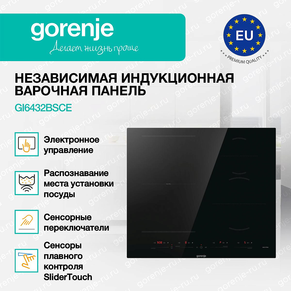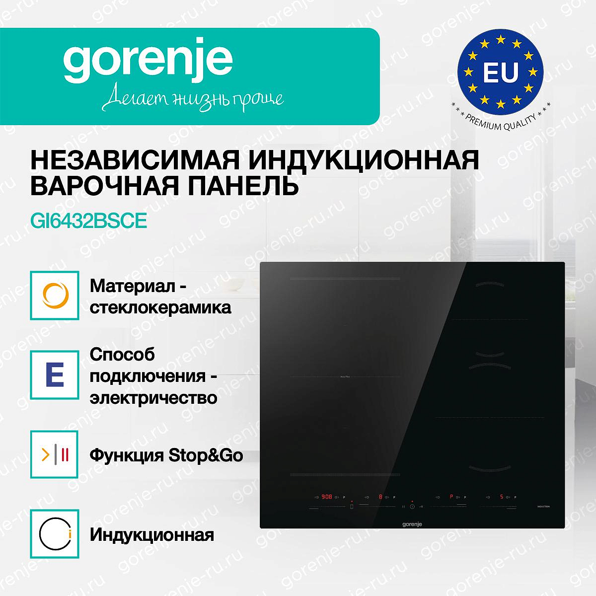 ** Все информационные материалы, представленные на Сайте, носят справочный характер и не могут в полной мере передавать достоверную информацию о свойствах, комплектации и характеристиках товара, включая цвета, размеры и формы. Фирма-производитель оставляет за собой право на внесение изменений в конструкцию, дизайн и комплектацию товара без предварительного уведомления. Перед оформлением Заказа Покупатель должен обратиться к Продавцу для уточнения свойств и характеристик Товара. Подробная информация о товаре указывается в инструкции и на упаковке товара. Используемое название в России: Горенье GI6432BSCE