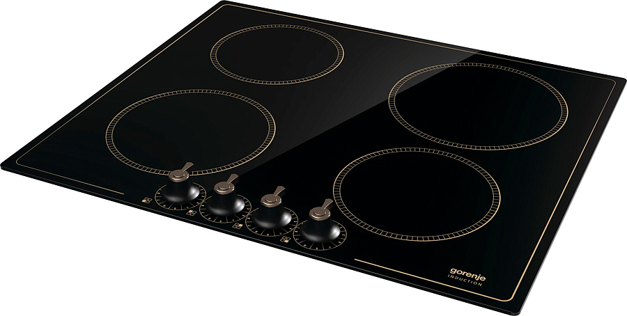 Независимая индукционная варочная панель Gorenje IK640CLB относится к коллекции Classico. Это классическая функциональность и ретро-дизайн. Особенно привлекательно смотрится сочетание антрацитовой поверхности и бронзовой фурнитуры и отделки. Индукционные токи в стеклокерамики ведут себя так, что проецируют нагрев сразу на посуду, а не конфорку. Поэтому сама плита при этом остаётся прохладной. Кроме того, она хорошо переносит перепады температур. Значит, вы можете одновременно жарить и размораживать продукты. Чистить материал просто — для этого нужен скребок и моющее средство.