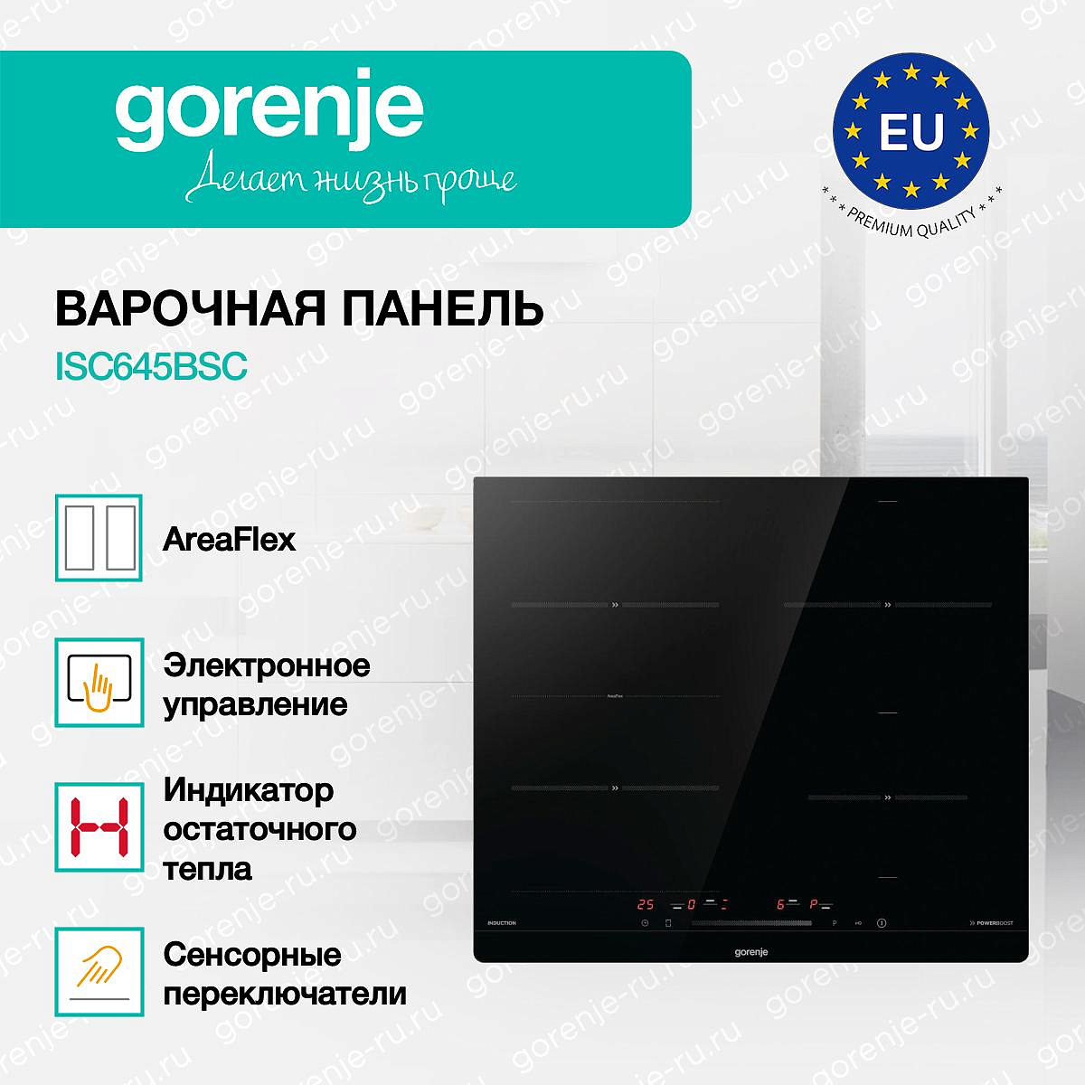 ** Все информационные материалы, представленные на Сайте, носят справочный характер и не могут в полной мере передавать достоверную информацию о свойствах, комплектации и характеристиках товара, включая цвета, размеры и формы. Фирма-производитель оставляет за собой право на внесение изменений в конструкцию, дизайн и комплектацию товара без предварительного уведомления. Перед оформлением Заказа Покупатель должен обратиться к Продавцу для уточнения свойств и характеристик Товара. Подробная информация о товаре указывается в инструкции и на упаковке товара. Используемое название в России: Горенье ISC645BSC