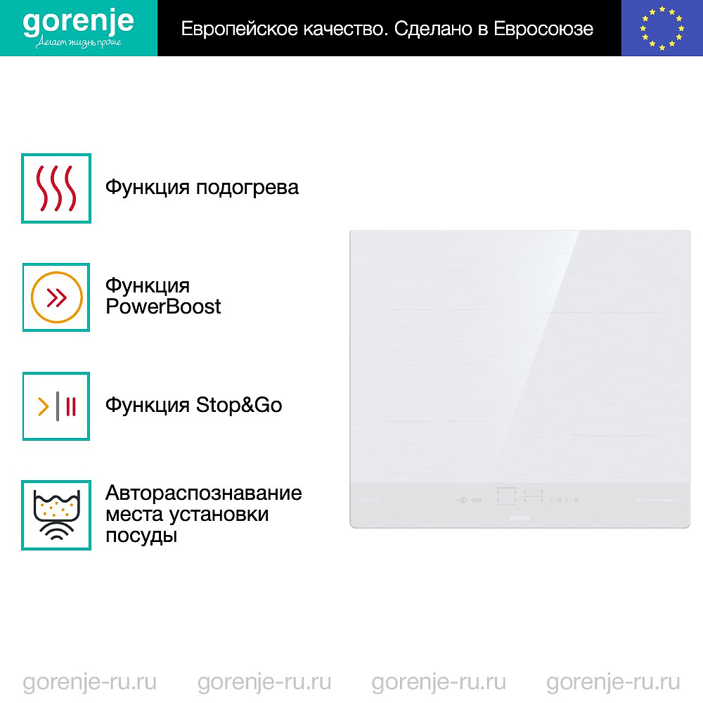 Независимая индукционная варочная панель Горение также оснащена функцией автораспознавания места установки посуды, которая определяет, где именно на поверхности находится посуда, и активирует соответствующую зону нагрева. Это упрощает использование и обеспечивает более точное управление температурой.