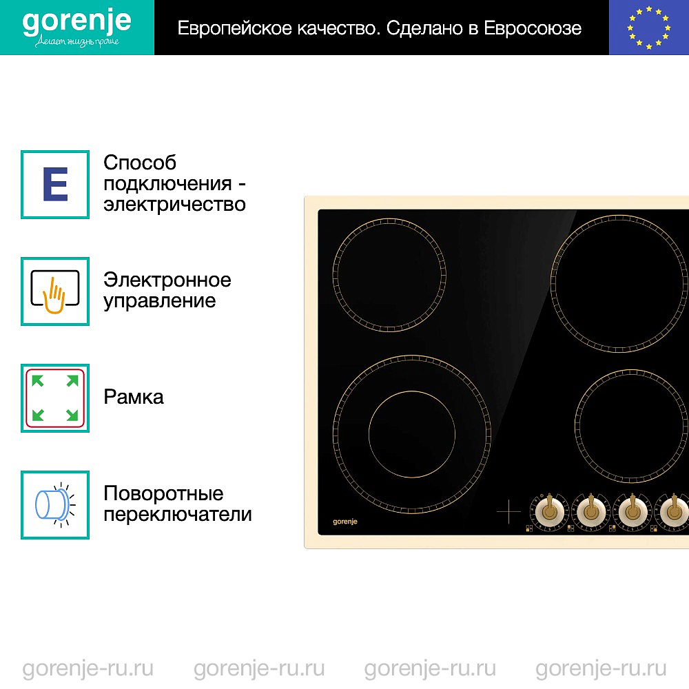 ** Все информационные материалы, представленные на Сайте, носят справочный характер и не могут в полной мере передавать достоверную информацию о свойствах, комплектации и характеристиках товара, включая цвета, размеры и формы. Фирма-производитель оставляет за собой право на внесение изменений в конструкцию, дизайн и комплектацию товара без предварительного уведомления. Перед оформлением Заказа Покупатель должен обратиться к Продавцу для уточнения свойств и характеристик Товара. Подробная информация о товаре указывается в инструкции и на упаковке товара. Используемое название в России: Горенье EC642CLI