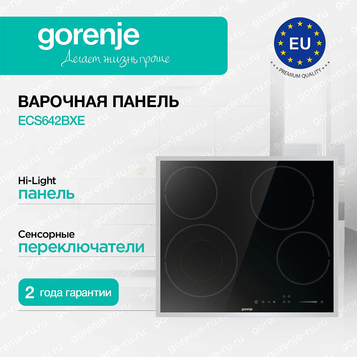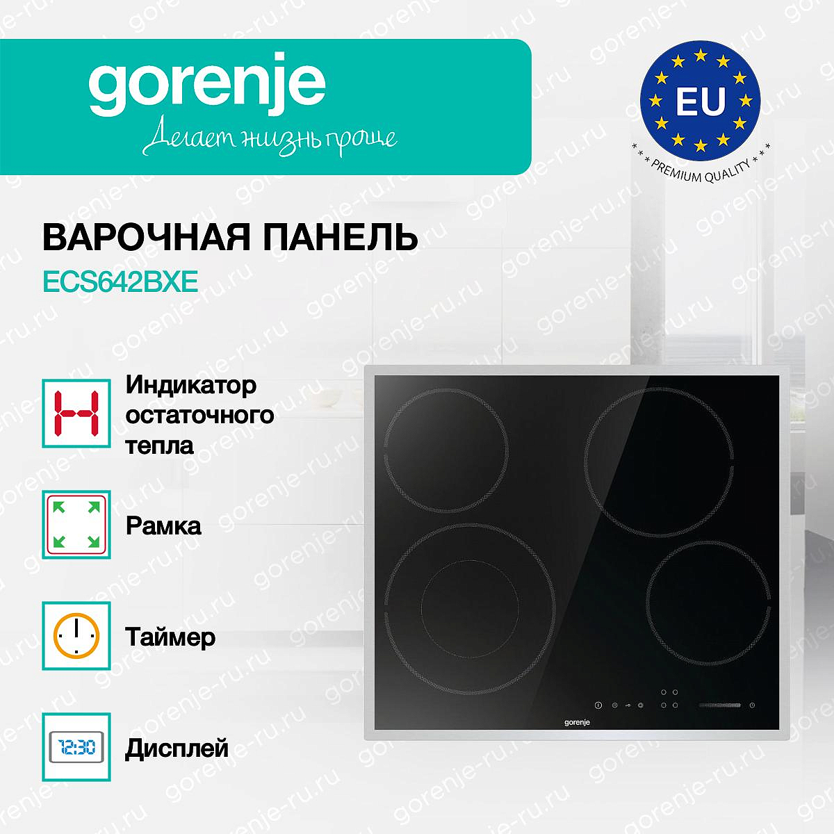 ** Все информационные материалы, представленные на Сайте, носят справочный характер и не могут в полной мере передавать достоверную информацию о свойствах, комплектации и характеристиках товара, включая цвета, размеры и формы. Фирма-производитель оставляет за собой право на внесение изменений в конструкцию, дизайн и комплектацию товара без предварительного уведомления. Перед оформлением Заказа Покупатель должен обратиться к Продавцу для уточнения свойств и характеристик Товара. Подробная информация о товаре указывается в инструкции и на упаковке товара. Используемое название в России: Горенье ECS642BXE