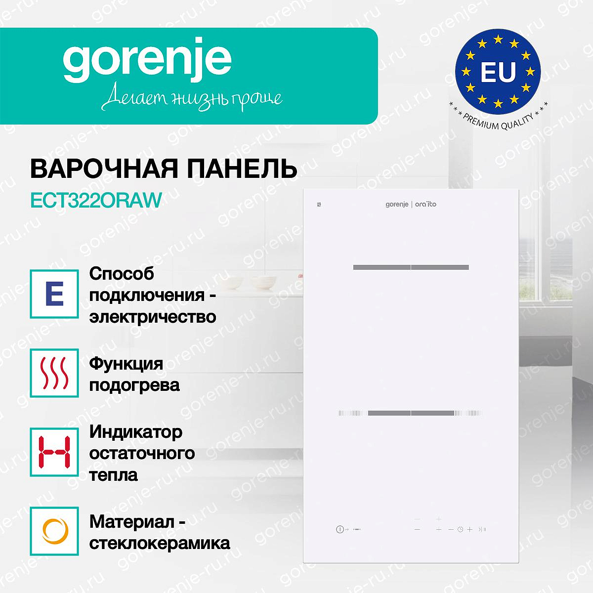 ** Все информационные материалы, представленные на Сайте, носят справочный характер и не могут в полной мере передавать достоверную информацию о свойствах, комплектации и характеристиках товара, включая цвета, размеры и формы. Фирма-производитель оставляет за собой право на внесение изменений в конструкцию, дизайн и комплектацию товара без предварительного уведомления. Перед оформлением Заказа Покупатель должен обратиться к Продавцу для уточнения свойств и характеристик Товара. Подробная информация о товаре указывается в инструкции и на упаковке товара. Используемое название в России: Горенье ECT322ORAW