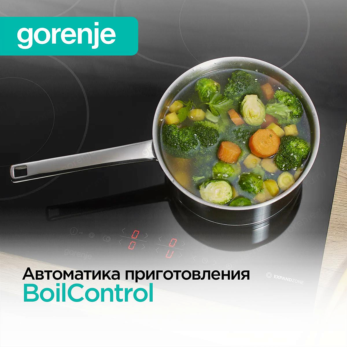 Электронное управление независимой стеклокерамической варочной панелью Горенье ECT643SYB осуществляется сенсорными переключателями на дисплее. Интуитивно понятный и логичный интерфейс поможет подключить нужную функцию и выбрать режим. Существенную помощь в изготовлении любых блюд окажет BoilControl — это автоматика приготовления, которая предложит вам несколько специальных программ с разной интенсивностью готовки. В зависимости от того, нужно ли ваше блюдо жарить, медленно томить на огне, просто вскипятить жидкость и так далее, вы сможете выбрать от 4 до 6 различных настроек. Подогрев StayWarm поможет вам сохранить температуру готового блюда до момента подачи его на стол.