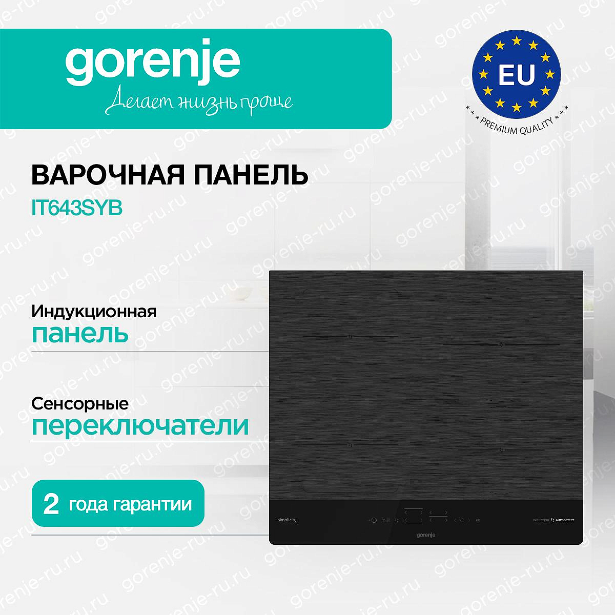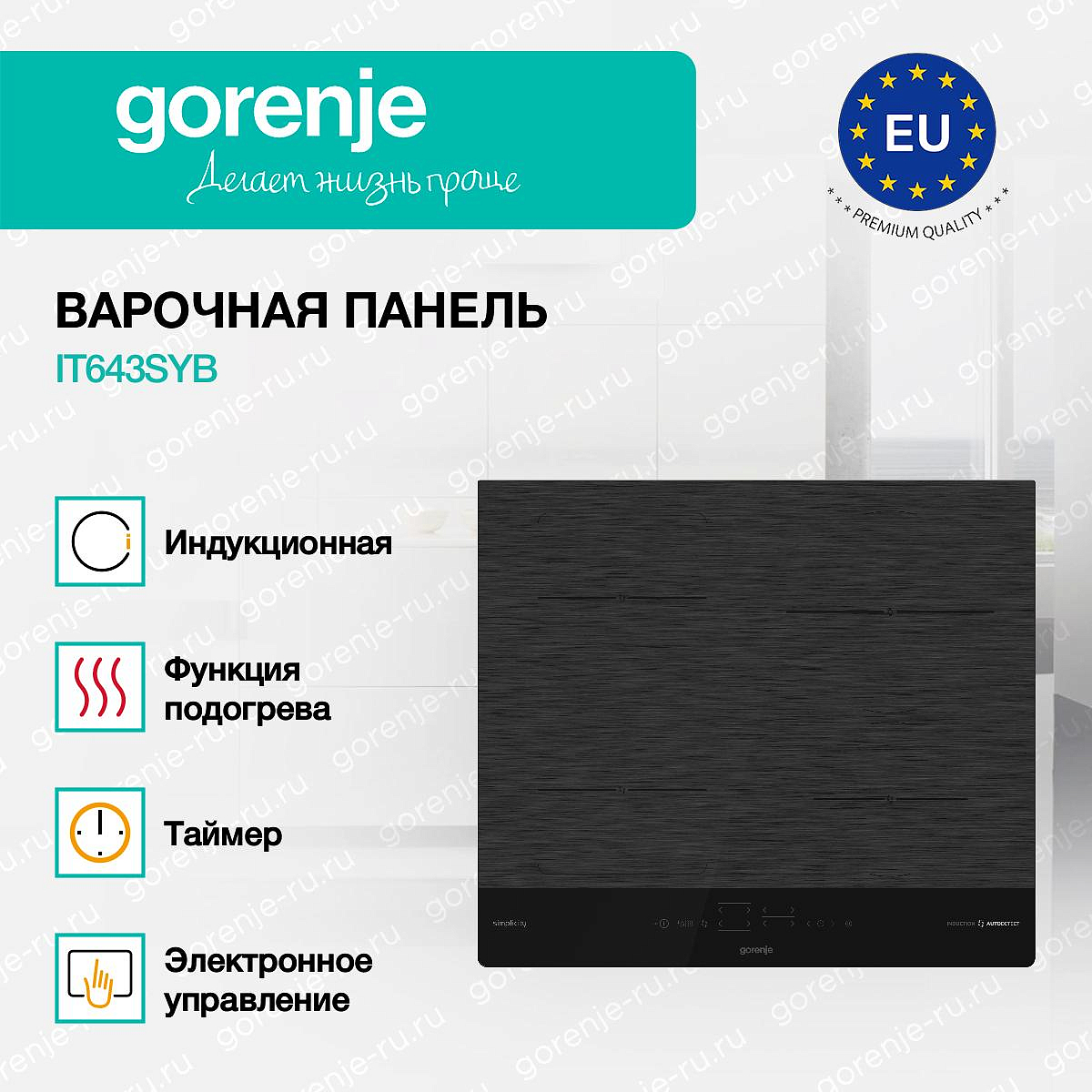 ** Все информационные материалы, представленные на Сайте, носят справочный характер и не могут в полной мере передавать достоверную информацию о свойствах, комплектации и характеристиках товара, включая цвета, размеры и формы. Фирма-производитель оставляет за собой право на внесение изменений в конструкцию, дизайн и комплектацию товара без предварительного уведомления. Перед оформлением Заказа Покупатель должен обратиться к Продавцу для уточнения свойств и характеристик Товара. Подробная информация о товаре указывается в инструкции и на упаковке товара. Используемое название в России: Горенье IT643SYB