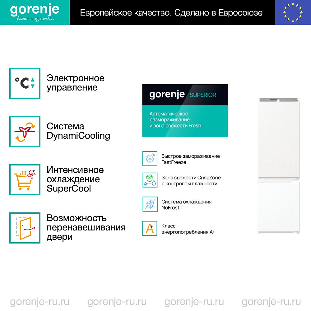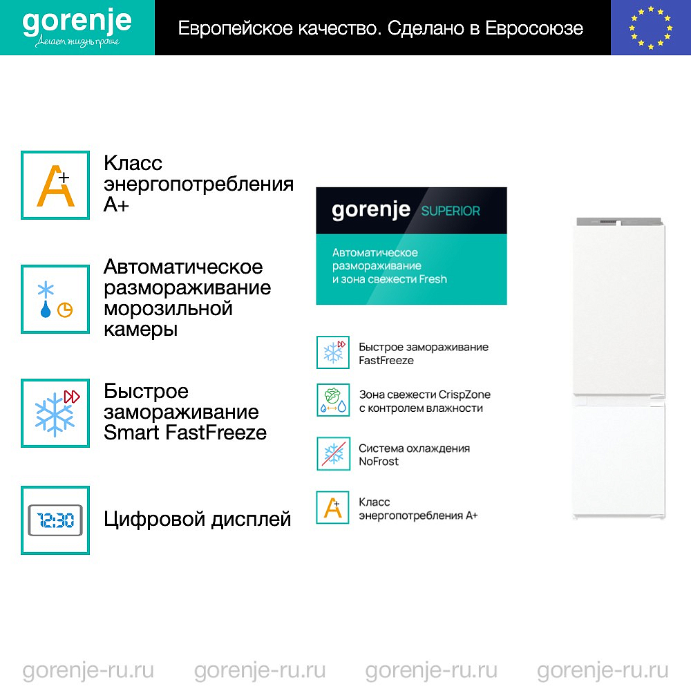 ** Все информационные материалы, представленные на Сайте, носят справочный характер и не могут в полной мере передавать достоверную информацию о свойствах, комплектации и характеристиках товара, включая цвета, размеры и формы. Фирма-производитель оставляет за собой право на внесение изменений в конструкцию, дизайн и комплектацию товара без предварительного уведомления. Перед оформлением Заказа Покупатель должен обратиться к Продавцу для уточнения свойств и характеристик Товара. Подробная информация о товаре указывается в инструкции и на упаковке товара. Используемое название в России: Горенье NRKI418FA0