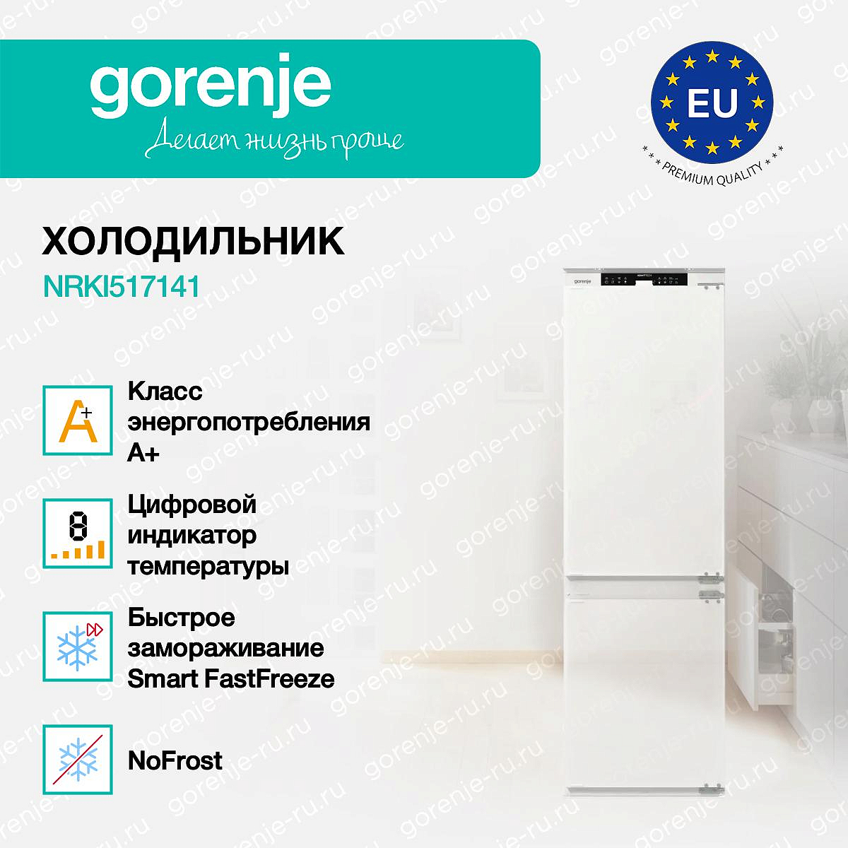 Встраиваемый двухкамерный холодильник Gorenje NRKI517141 — это уникальное сочетание стильного дизайна, функциональности и надежности. Этот белоснежный холодильник с металлической дверцей идеально впишется в любой интерьер, обеспечивая не только эстетическое удовольствие, но и высокую производительность.