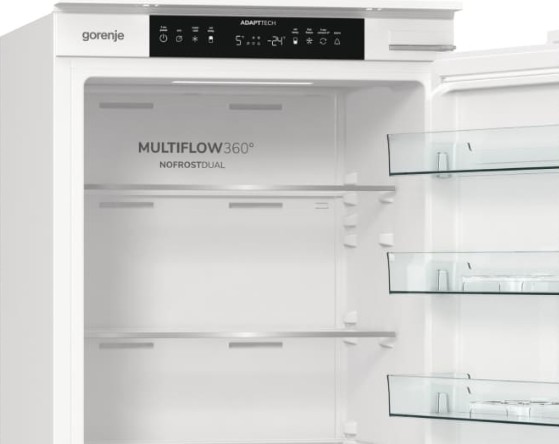 Регулируемые полки MultiAdjust позволяют легко изменять их расположение в зависимости от размеров и количества хранимых продуктов. Это дает возможность эффективно использовать внутреннее пространство холодильника и размещать крупные или нестандартные предметы, такие как большие кастрюли или бутылки. Система MultiAdjust обеспечивает гибкость и удобство при организации внутреннего пространства устройства.