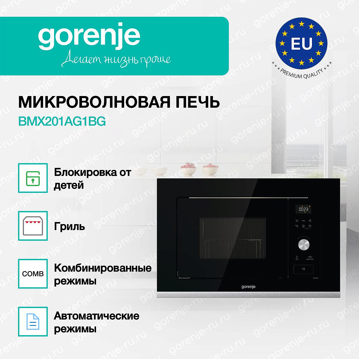 ** Все информационные материалы, представленные на Сайте, носят справочный характер и не могут в полной мере передавать достоверную информацию о свойствах, комплектации и характеристиках товара, включая цвета, размеры и формы. Фирма-производитель оставляет за собой право на внесение изменений в конструкцию, дизайн и комплектацию товара без предварительного уведомления. Перед оформлением Заказа Покупатель должен обратиться к Продавцу для уточнения свойств и характеристик Товара. Подробная информация о товаре указывается в инструкции и на упаковке товара. Используемое название в России: Горенье BMX201AG1BG