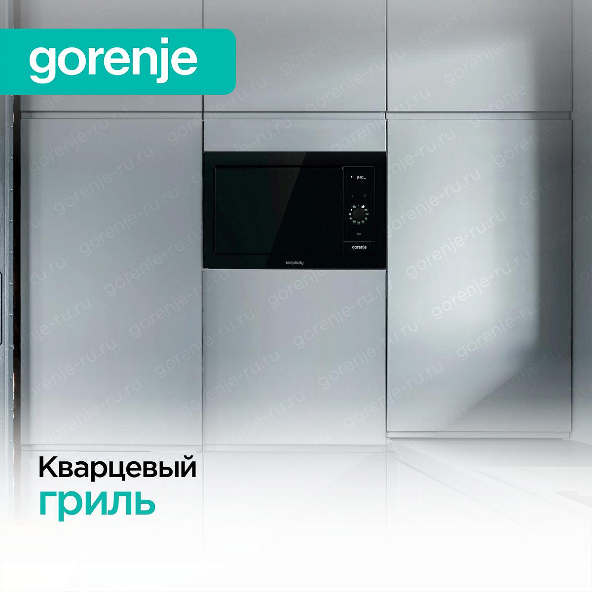 Встраиваемая микроволновая печь Gorenje BM235G1SYB — модель элегантного чёрного цвета, основные элементы которой выполнены из металла и стекла. Идеально подойдет для любого интерьера. Рабочая камера изготовлена из нержавеющей стали, позволяющей равномерно распределять микроволны. Кроме того, этот материал легок в уходе. Благодаря электронному управлению, которое осуществляется с помощью поворотных переключателей и сенсорной панели, вы легко выберете нужные вам настройки и режимы. Сможете регулировать уровень мощности микроволн — всего предусмотрено 5 ступеней. Модель оснащена кварцевым грилем, который дает более высокую рабочую температуру, таймером, звуковым сигналом и освещением. Увеличенная площадь приготовления внутреннего отделения SuperSize позволит вам готовить и разогревать порции большего объема. Дверца открывается влево с помощью кнопки.
