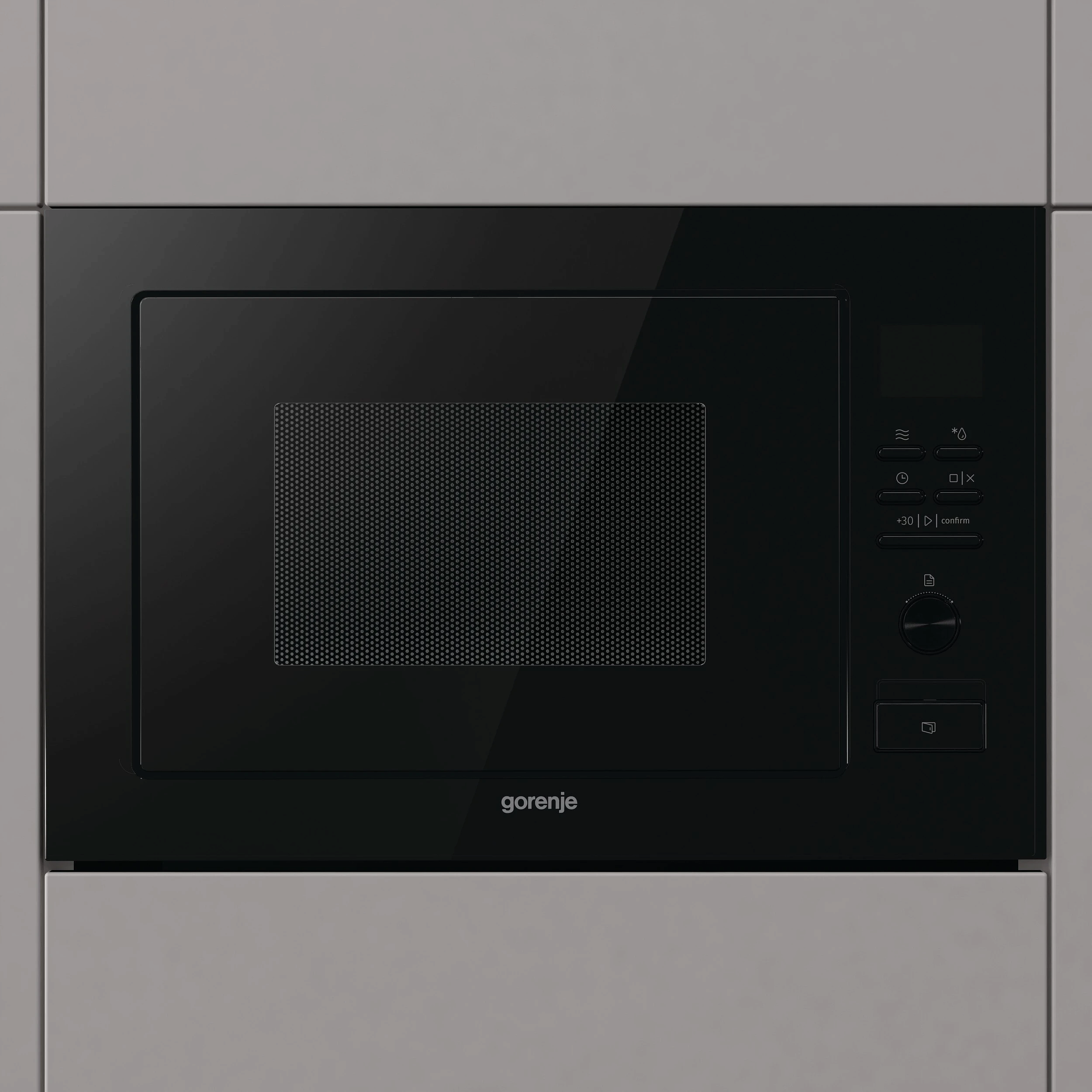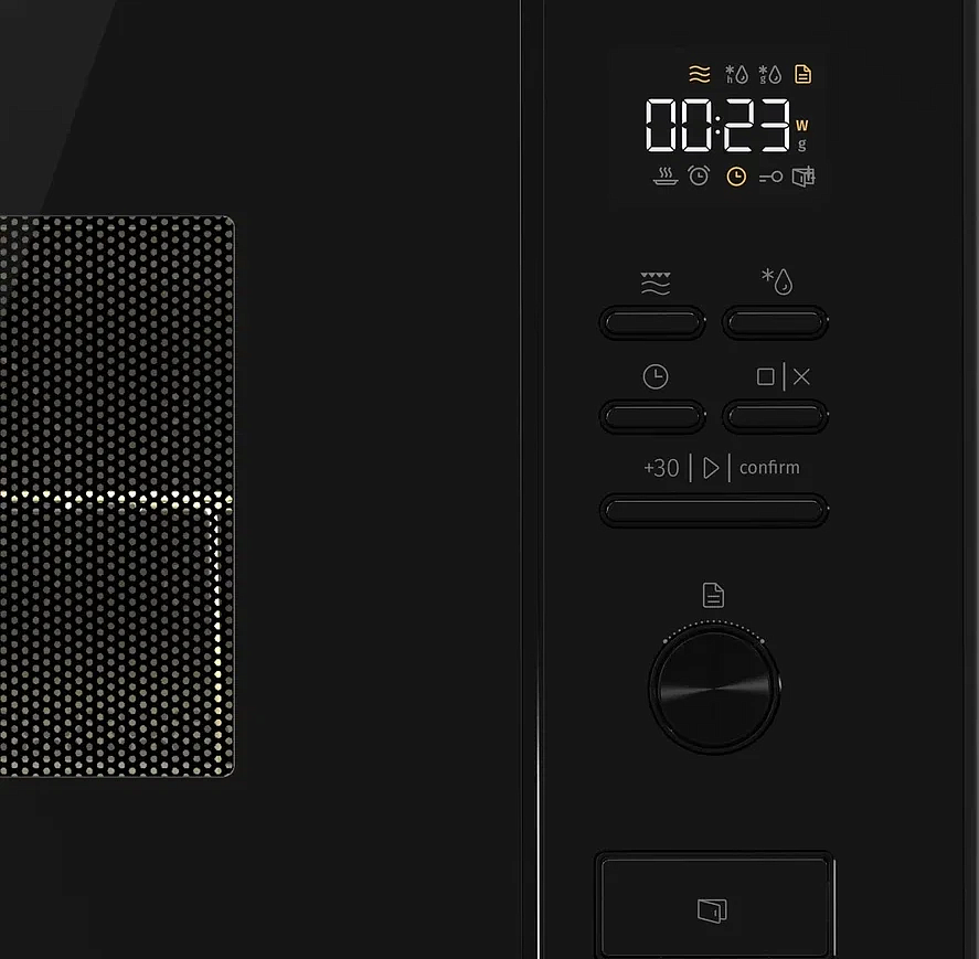 Освещение во встраиваемых микроволновках Gorenje — яркое, равномерное и энергоэффективное. Чаще используется LED-подсветка, реже — галогенная. Свет автоматически включается при открытии дверцы и во время работы — вы всегда видите, как прогревается или готовится блюдо, без необходимости открывать камеру. Особенно важно для встраиваемых моделей: они часто установлены на уровне глаз или выше, и хорошая подсветка упрощает контроль. LED-лампы не нагреваются, служат долго и потребляют минимум энергии.