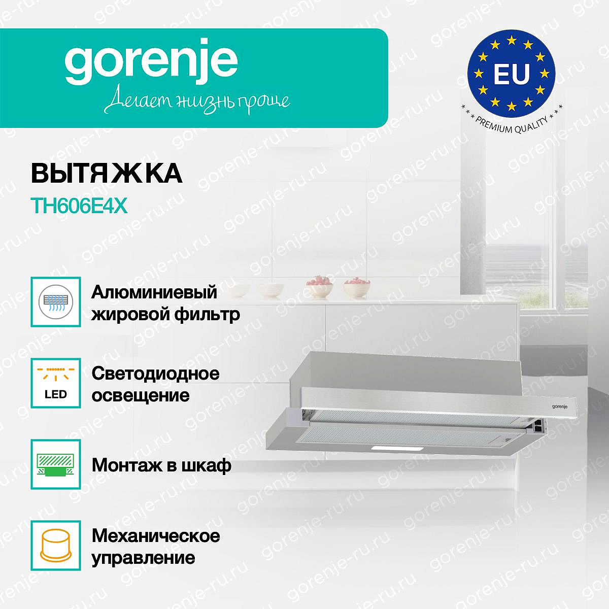 ** Все информационные материалы, представленные на Сайте, носят справочный характер и не могут в полной мере передавать достоверную информацию о свойствах, комплектации и характеристиках товара, включая цвета, размеры и формы. Фирма-производитель оставляет за собой право на внесение изменений в конструкцию, дизайн и комплектацию товара без предварительного уведомления. Перед оформлением Заказа Покупатель должен обратиться к Продавцу для уточнения свойств и характеристик Товара. Подробная информация о товаре указывается в инструкции и на упаковке товара. Используемое название в России: Горенье TH606E4X